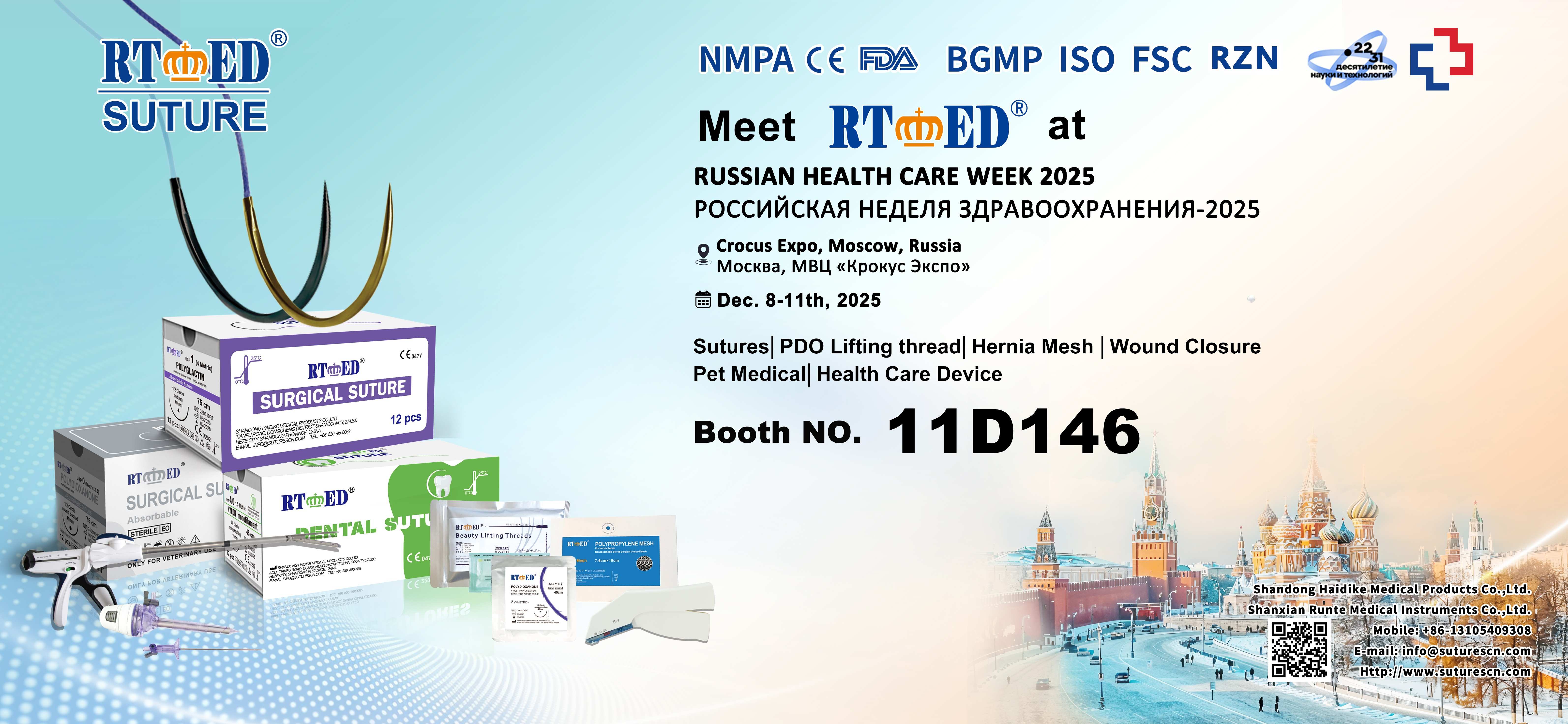 Shandong Haidike Medical Products Co., Ltd. specializes in the production of medical consumables enterprises. We have CE, FDA, ISO and CFDA certification. RTMED has registered as Madrid trademark. The main products are absorbable surgical suture with needle (Plain / Chromic Catgut, PGA, PDO, PGLA, PGCL, etc.), non-absorbable surgical suture with needle (Silk, Nylon, Polyester, Polypropylene etc.),surgical needle (300SS and 400SS Series), lifting threads for beauty, medical mask, wheelchair, orthopedic casting tapes & splints, polypropylene meshes, Pet medical products and so on.